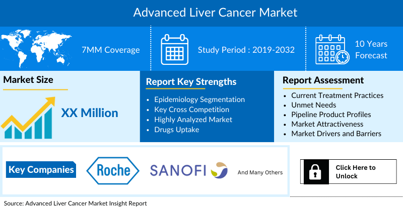 The Advanced Liver Cancer market report provides current treatment practices, emerging drugs, Advanced Liver Cancer market share of the individual therapies, current and forecasted Advanced Liver Cancer market Size from 2019 to 2032 segmented by seven major markets. The Report also covers current Advanced Liver Cancer treatment practice/algorithm, market drivers, market barriers and Advanced Liver Cancer unmet needs to curate the best of the opportunities and assesses the underlying potential of the Advanced Liver Cancer market.