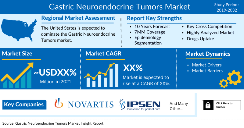 The Gastric Neuroendocrine Tumors market report provides current treatment practices, emerging drugs, Gastric Neuroendocrine Tumors market share of the individual therapies, current and forecasted Gastric Neuroendocrine Tumors market Size from 2019 to 2032 segmented by seven major markets. The Report also covers current Gastric Neuroendocrine Tumors treatment practice/algorithm, market drivers, market barriers and unmet medical needs to curate the best of the opportunities and assesses the underlying potential of the Gastric Neuroendocrine Tumors market.