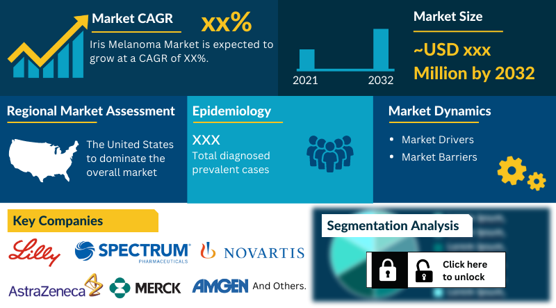 The Iris Melanoma market report provides current treatment practices, emerging drugs, Iris Melanoma market share of the individual therapies, current and forecasted Iris Melanoma market Size from 2019 to 2032 segmented by seven major markets. The Report also covers current Iris Melanoma treatment practice/algorithm, market drivers, market barriers and Iris Melanoma unmet medical needs to curate the best of the opportunities and assesses the underlying potential of the Iris Melanoma market.