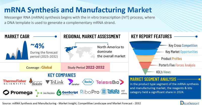 - The global mRNA synthesis and manufacturing market is estimated to grow at a CAGR of 4.32% during the forecast period from 2025 to 2032.